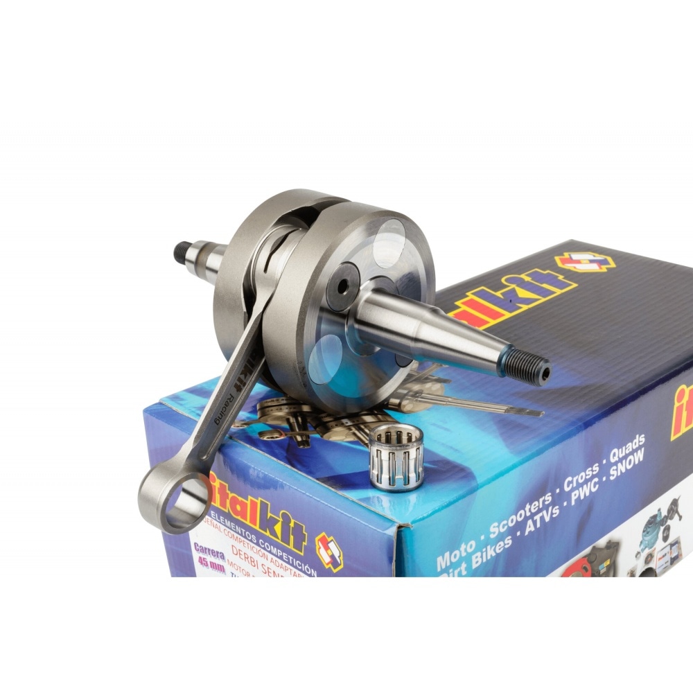 The long-stroke crankshaft (44.90 mm) is made of high-quality steel, with a reinforced 90mm connecting rod. It can withstand up to 16,000 revolutions per minute and offers an actual displacement of 95.35 cc thanks to the long stroke. The racing shaft is characterized by a particularly low weight and maximum durability.