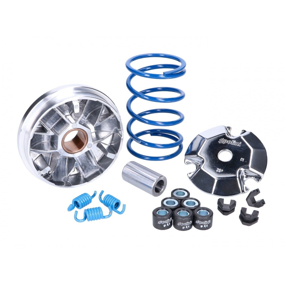 Polini populārais Hi-Speed variators 50 cm3 dzinējiem, top tūninga produkts no Itālijas: Pārstrādāti un optimizēti leņķi paplašina transmisijas diapazonu un nodrošina ievērojami lielāku jaudu, kas galvenokārt izpaužas kā labāks paātrinājums, bet nedaudz palielināts arī maksimālais ātrums. Cieti hromētās rullīšu sliedes ar cietu hroma pārklājumu nodrošina lielisku un ļoti vienmērīgu darbību un pagarina variatora kalpošanas laiku.