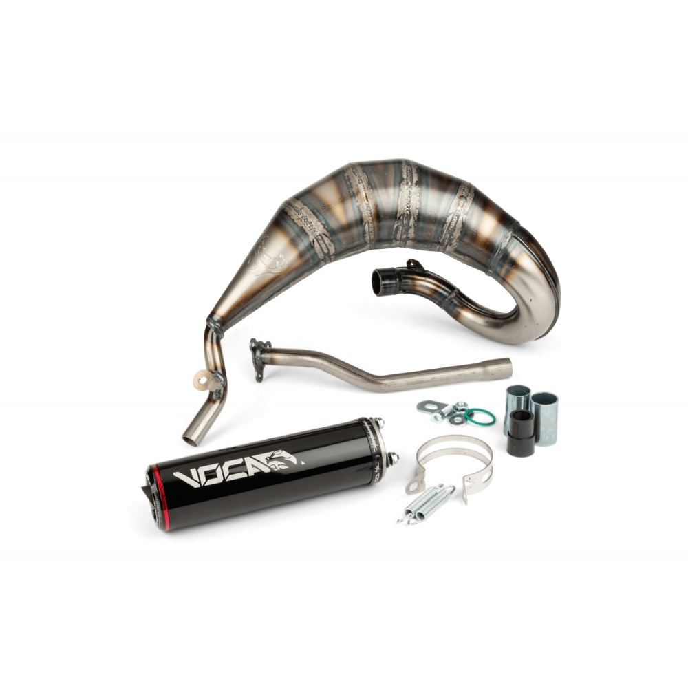 Voca Racing Exhaust Cross Rookie 50cc/70cc Sherco 50cc (with black silencer) – extremely powerful exhaust by Spanish racing expert Voca Racing. The Rookie line is Voca’s first street-legal exhaust line.