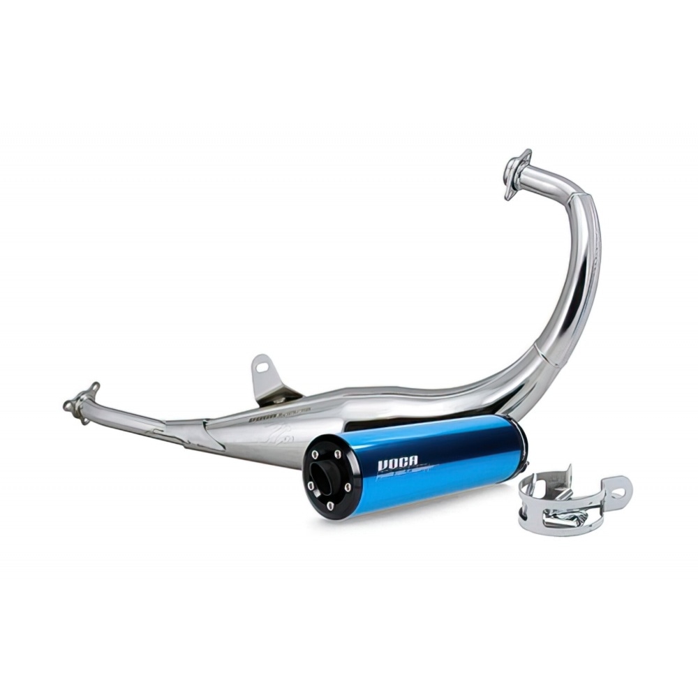 Voca Racing, galvenais motorolleru un mopēdu izpūtēju ražotājs, nāca klajā ar šo Voca Racing Exhaust chrome / blue silencer 50 / 70cc, street-legal exhaust for models with Derbi Senda Euro 2 / Euro 3 engine.