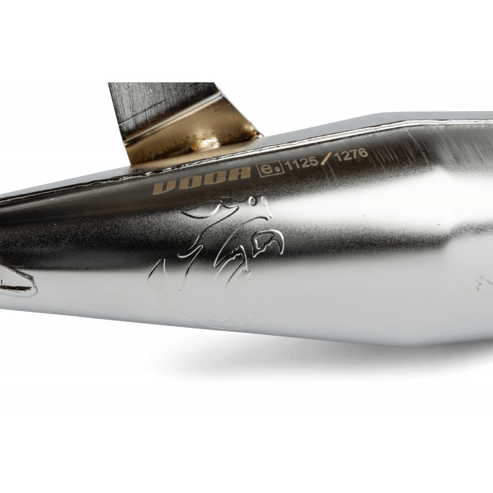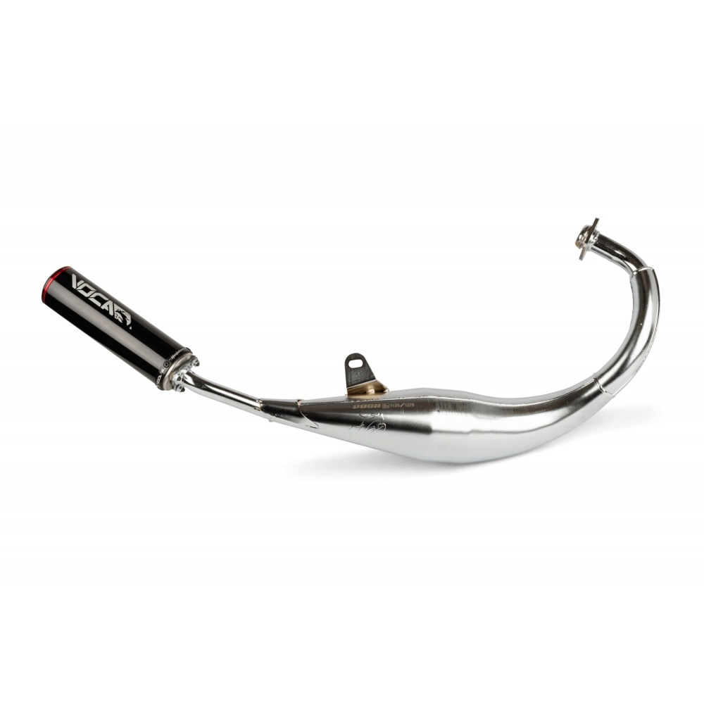 Voca Racing, galvenais motorolleru un mopēdu izpūtēju ražotājs, nāca klajā ar šo Voca Racing izpūtējs hroms / melns trokšņa slāpētājs 50 / 70cc, street-legal exhaust for models with Derbi Senda Euro 2 / Euro 3 engine.