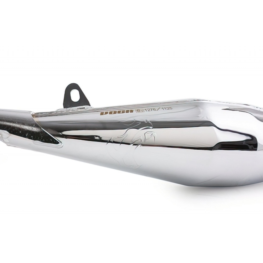 Voca Racing, galvenais motorolleru un mopēdu izpūtēju ražotājs, nāca klajā ar šo Voca Racing Exhaust chrome / red silencer 50 / 70cc, street-legal exhaust for models with Derbi Senda Euro 2 / Euro 3 engine.