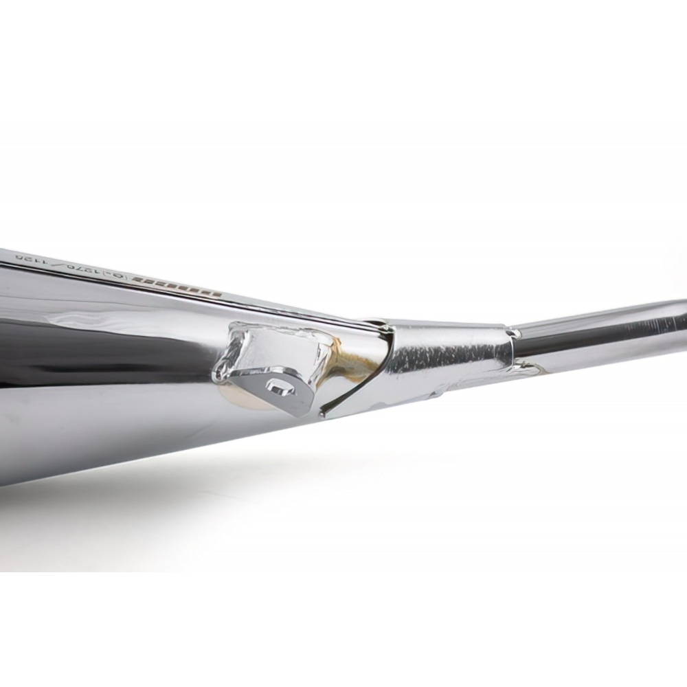 Materials, design and workmanship are above reproach. The expansion chamber has a stunning looking chrome coat; the chrome coating prevents rusting. The silencer sports an anodized red finish with laser engraved Voca logo.