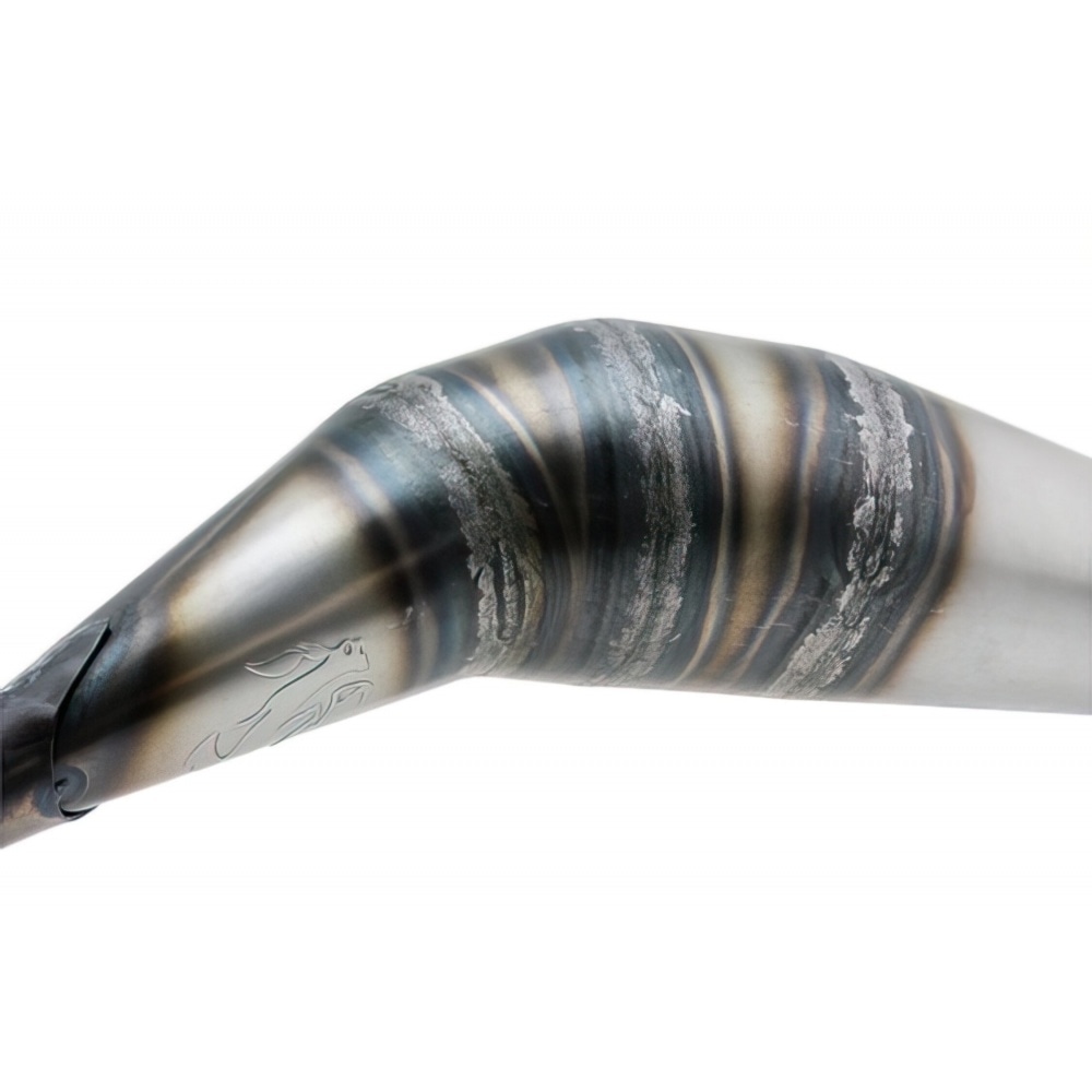 This exhaust has an extremely large volume and comes with a 34mm flange – only for large displacement set-ups! Handmade from thin sheet metal with excellent finishing, boasting a beautiful carbon silencer.